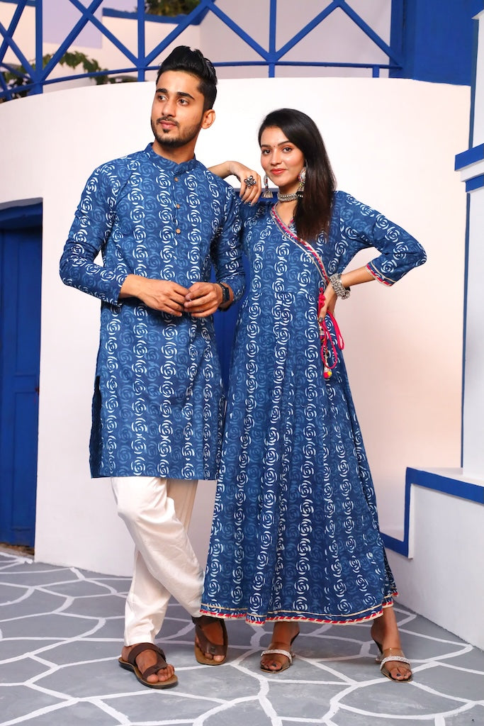 Our matching clothes for couples are handcrafted by the artisans living in Rajasthan, Jaipur, who add tones to this Indian craft using block print technique making it lively and beautiful. Our Handcrafted couple twinning clothes and dress are a must-have if you love lightweight, cotton printed shirts in your wardrobe collection.