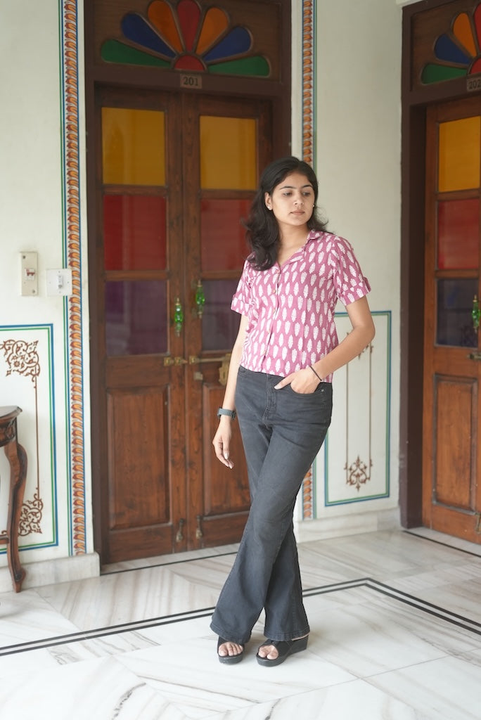 Our Printed Cropped Shirts for Women with wooden buttons are handcrafted by the artisans living in Rajasthan, Jaipur, who add tones to this Indian craft using the block print technique making it lively and beautiful. Our Handcrafted Block Print Cotton Shirt for Women is a must-have for summers if you love lightweight, cotton printed Women’s Shirts in your wardrobe collection. .Please note that slight color variations may occur due to differences in studio lighting and sunlight effects.