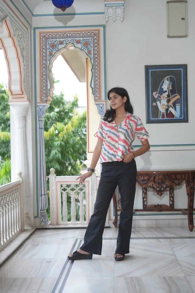 Our Printed Cropped Shirts for Women with wooden buttons are handcrafted by the artisans living in Rajasthan, Jaipur, who add tones to this Indian craft using the block print technique making it lively and beautiful. Our Handcrafted Block Print Cotton Shirt for Women is a must-have for summers if you love lightweight, cotton printed Women’s Shirts in your wardrobe collection. .Please note that slight color variations may occur due to differences in studio lighting and sunlight effects.
