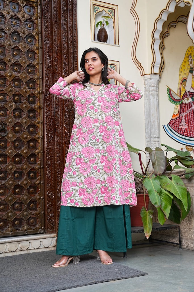 About the Craft: These beautiful kurta plazo set  are handcrafted using hand work along with natural colours. These suit are handcrafted with love in Jaipur its is Cotton fabric, India. Color is very minimal with superb quality. Bagru Hand block print with natural dye and Dabu Pure cotton.