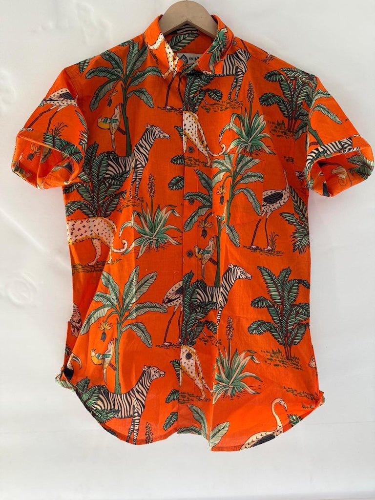Orange Jungle Print Vintage Cotton Shirt by Kartikeya Jaipur