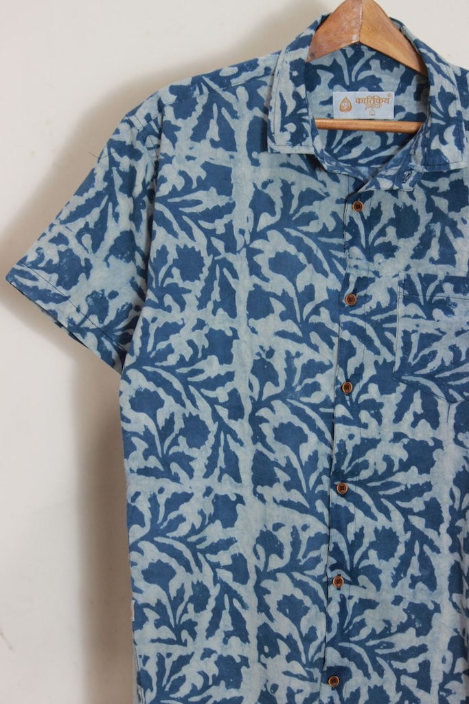 Classic Organic Indigo Print Men's Half Sleeves Shirt