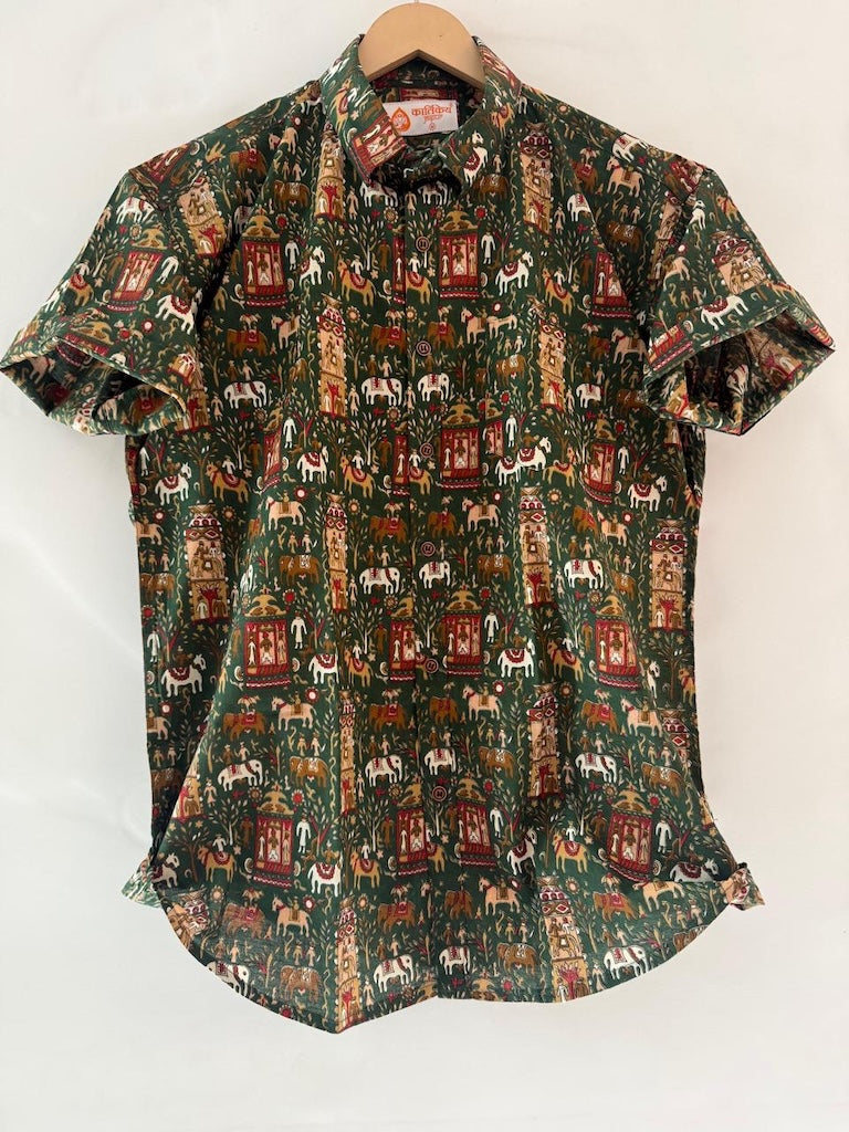 About the Craft Our shirts are handcrafted by the artisans living in Rajasthan, Jaipur, who add tones to this Indian craft using Sanganeri print technique making it lively and beautiful. Our Sanganeri Print Cotton Vintage Shirts are a must-have if you love lightweight, cotton printed shirts in your wardrobe collection.