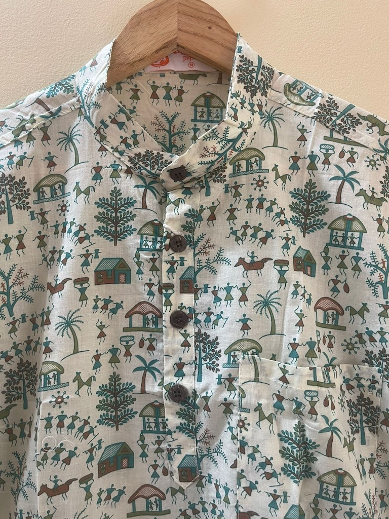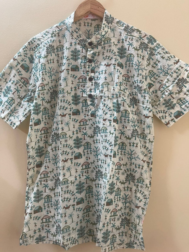 Tribal Print Half Sleeve Cotton Short Kurta for Men