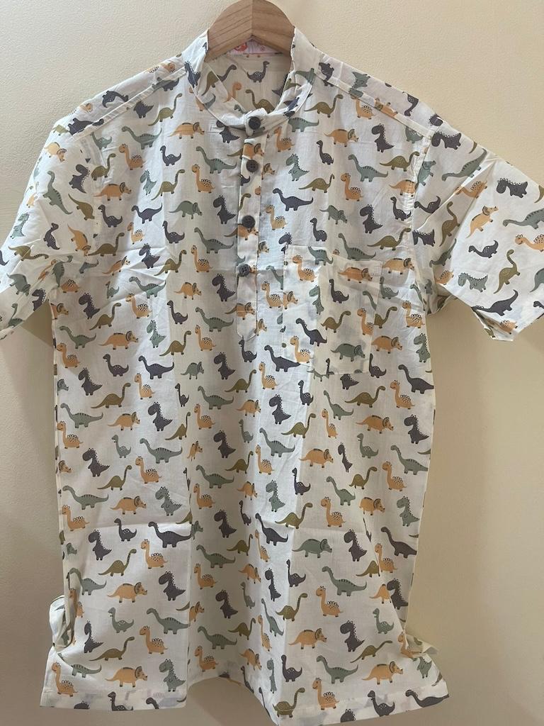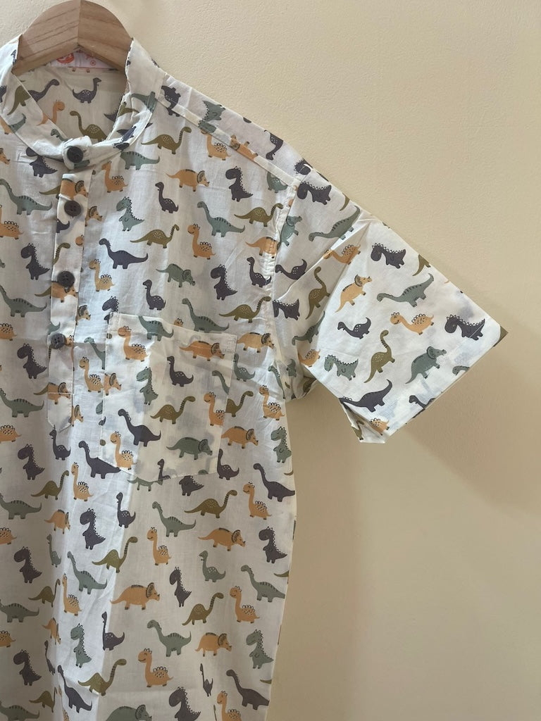 Dino Print Half Sleeve Cotton Short Kurta for Men