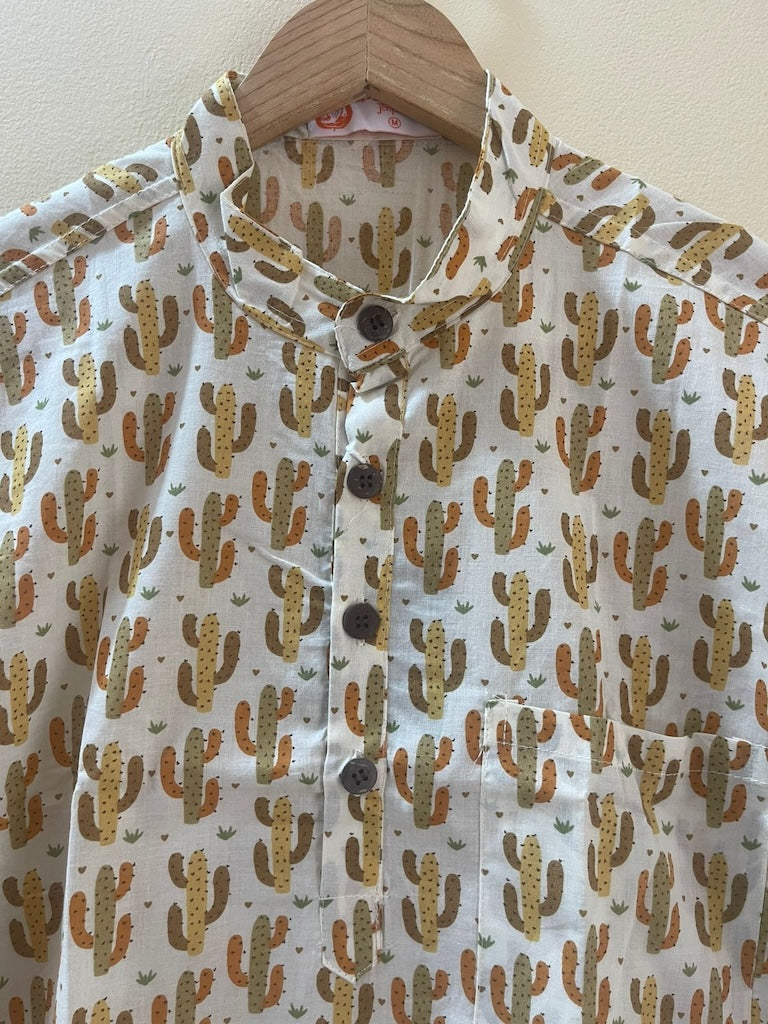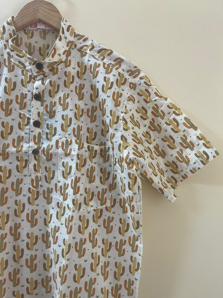 Cactus Print Half Sleeve Cotton Short Kurta for Men