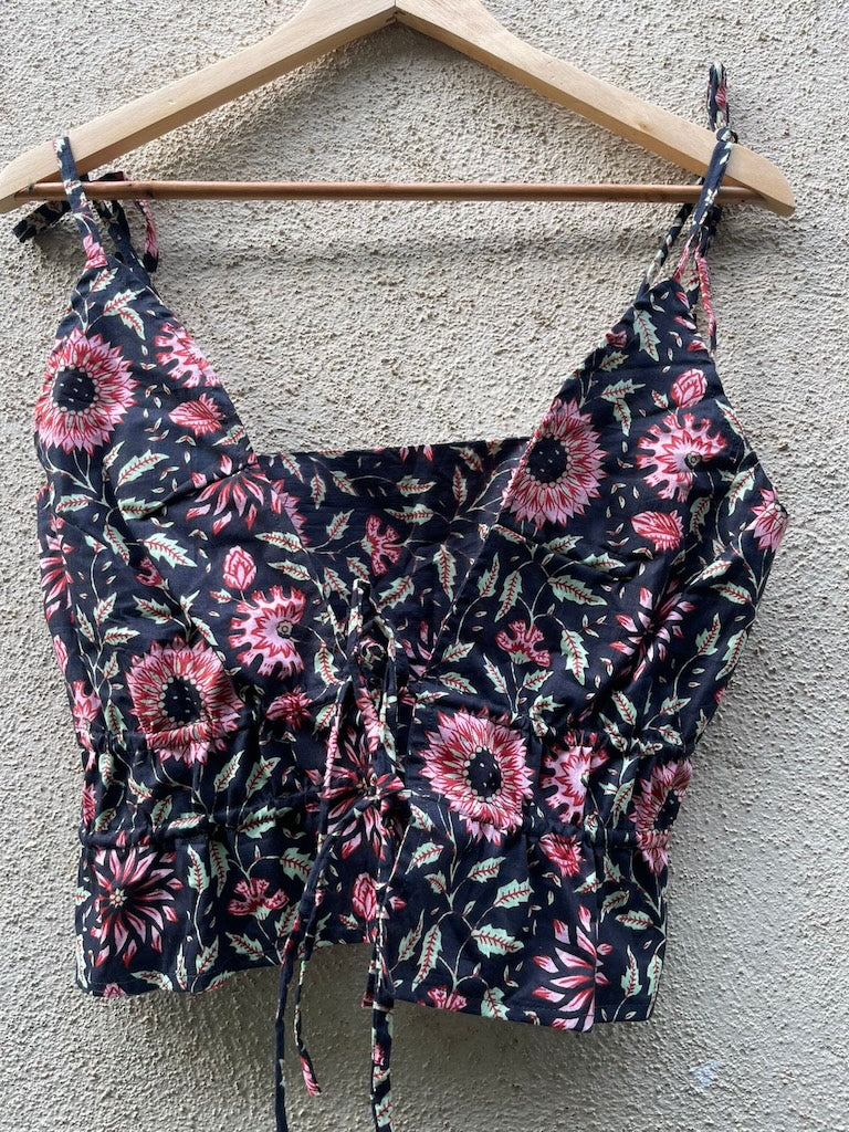 Name 100% cotton, Pure Hand block printed Front Knot  bralette top
