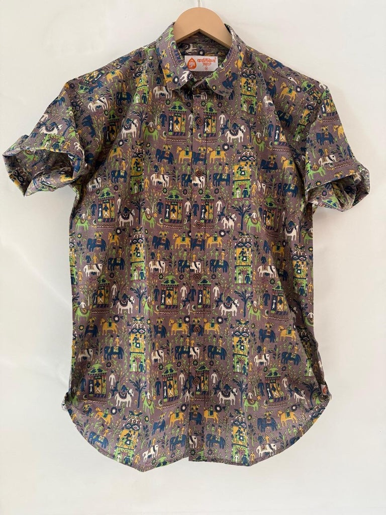 About the Craft Our shirts are handcrafted by the artisans living in Rajasthan, Jaipur, who add tones to this Indian craft using Sanganeri print technique making it lively and beautiful. Our Sanganeri Print Cotton Vintage Shirts are a must-have if you love lightweight, cotton printed shirts in your wardrobe collection.