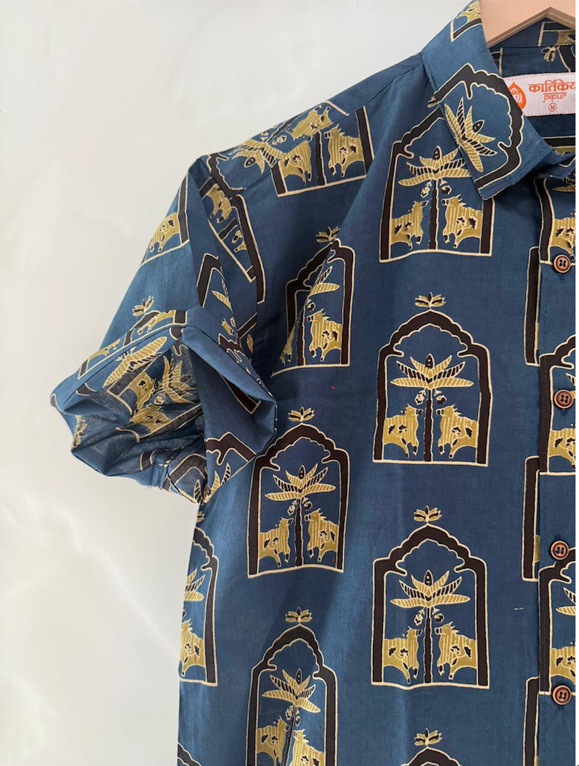 | About the Craft | Our shirts are handcrafted by the artisans living in Rajasthan, Jaipur, who add tones to this Indian craft using Sanganeri print technique making it lively and beautiful. Our Sanganeri Print Cotton Vintage Shirts are a must-have if you love lightweight, cotton printed shirts in your wardrobe collection. |