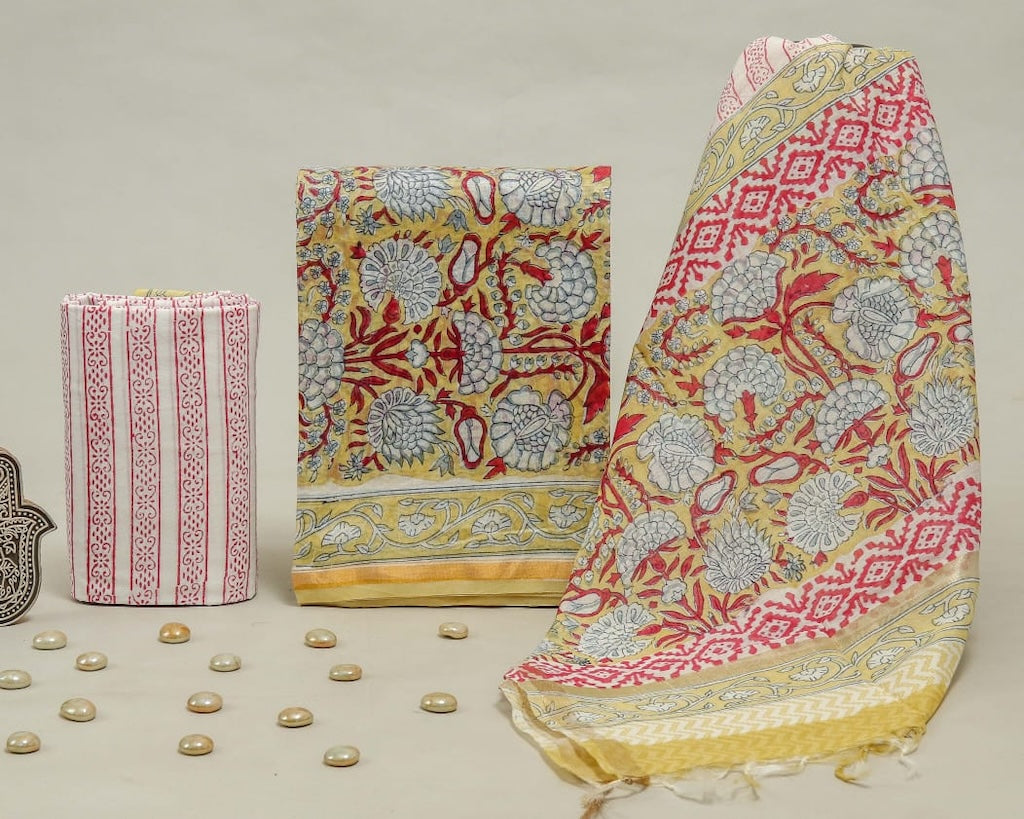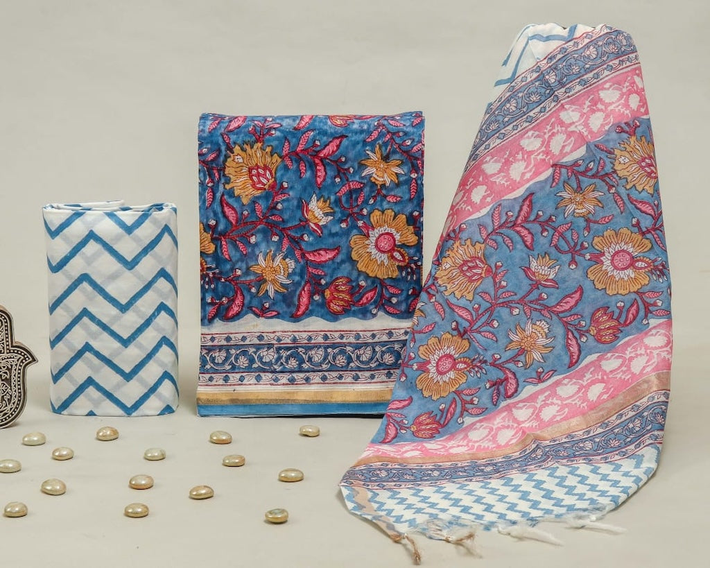 Hand Block Chanderi Silk Dress Materials