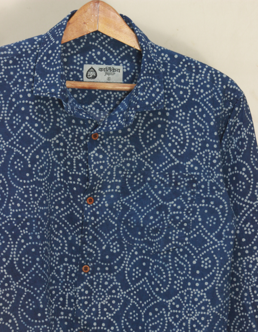 Indigo Full Sleeve Casual Bandhani Shirt for Men