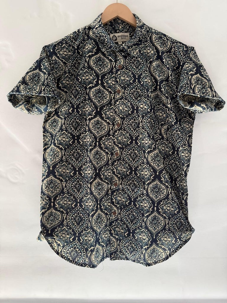 About the Craft Our shirts are handcrafted by the artisans living in Rajasthan, Jaipur, who add tones to this Indian craft using block print technique making it lively and beautiful. Our Handcrafted Block Print Cotton Vintage Shirts are a must-have if you love lightweight, cotton printed shirts in your wardrobe collection. Note - Please note that slight color variations may occur due to differences in studio lighting and sunlight effects.