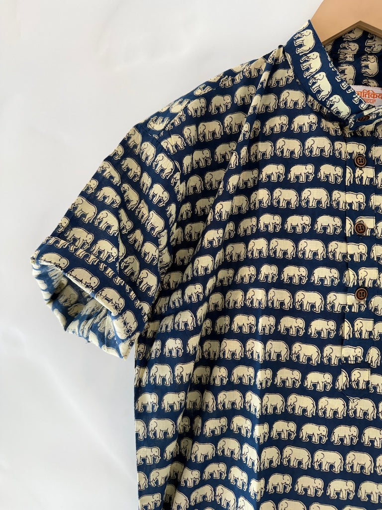 Elephant Print Half Sleeve Cotton Short Kurta for Men