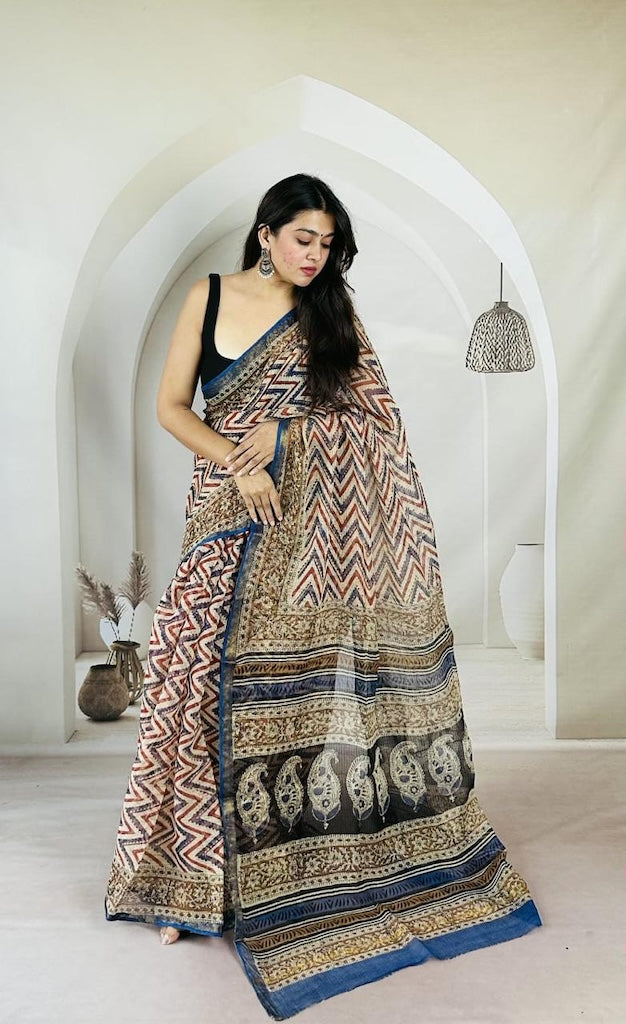 | About | Hand Block Bagru Printed Kota Doria Saree |