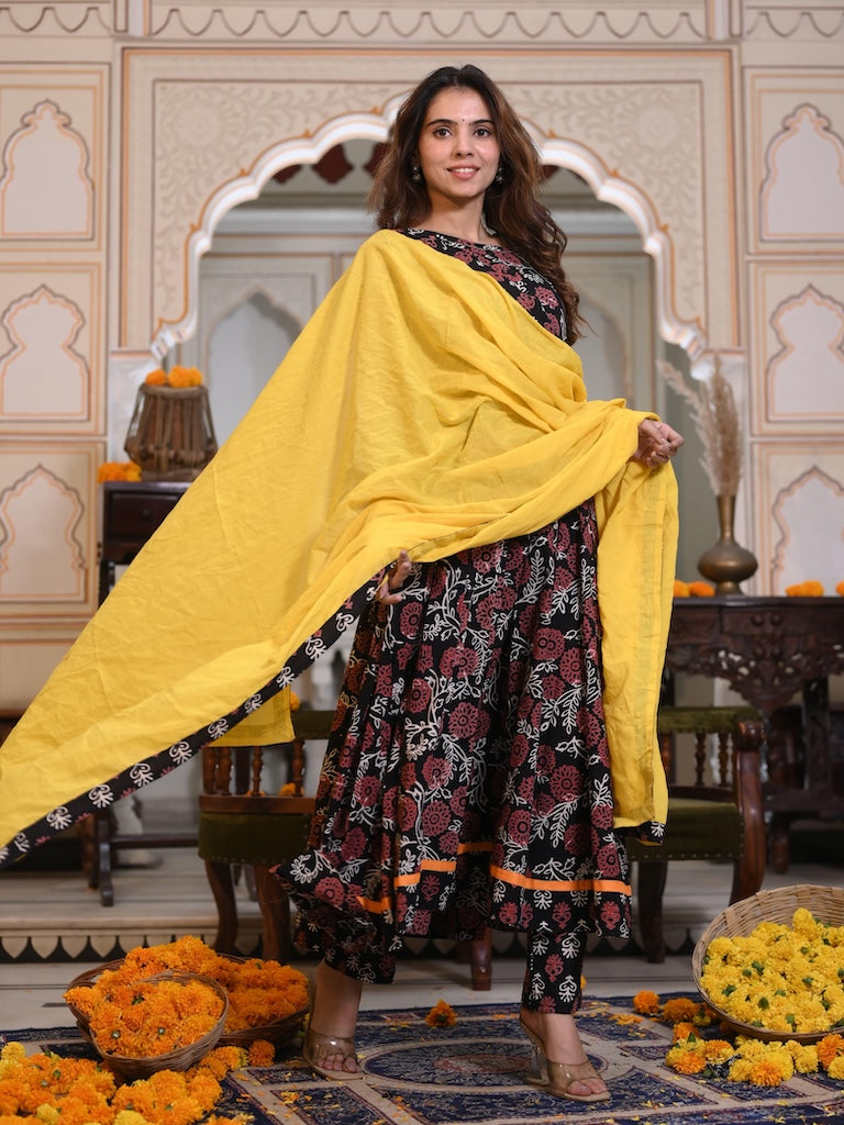 New Collection of Bagru Handblock Printed Anarkali Set With Mulmul Duptta