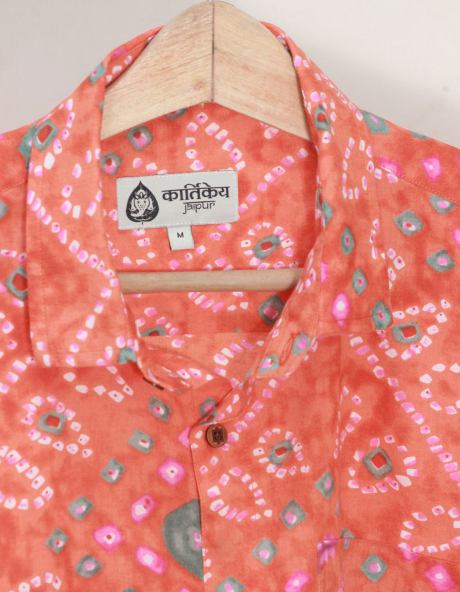 Orange Bandhej Cotton Full Sleeve Shirt for Men