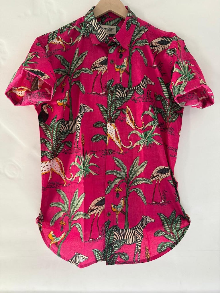 Pink Jungle Print Vintage Short Sleeve Men's Shirt