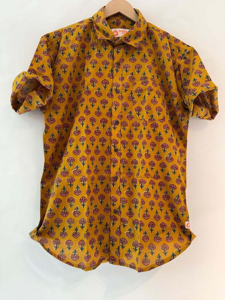 About the Craft Our shirts are handcrafted by the artisans living in Rajasthan, Jaipur, who add tones to this Indian craft using Sanganeri print technique making it lively and beautiful. Our Handcrafted Sanganeri Print Cotton Vintage Shirts are a must-have if you love lightweight, cotton printed shirts in your wardrobe collection.