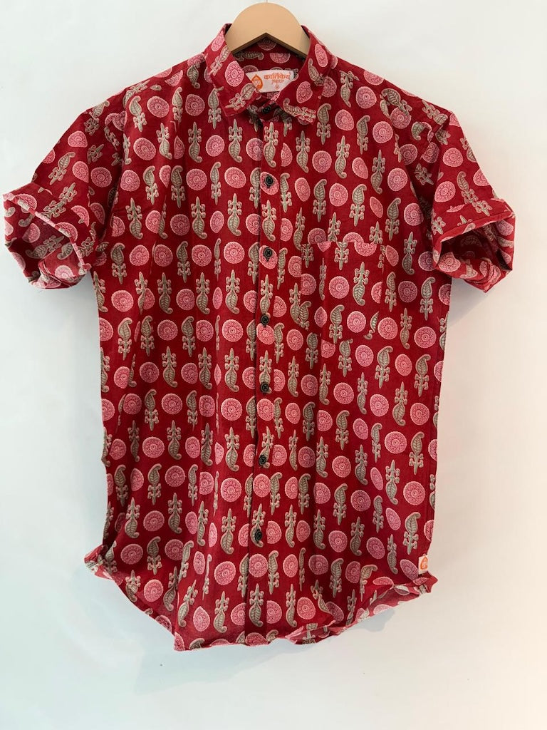 About the Craft Our shirts are handcrafted by the artisans living in Rajasthan, Jaipur, who add tones to this Indian craft using Sanganeri print technique making it lively and beautiful. Our Handcrafted Sanganeri Print Cotton Vintage Shirts are a must-have if you love lightweight, cotton printed shirts in your wardrobe collection.