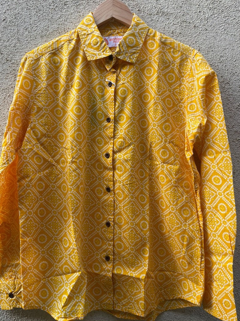 Women Traditional Bandhej Print Cotton Shirt ( Haldi Print )