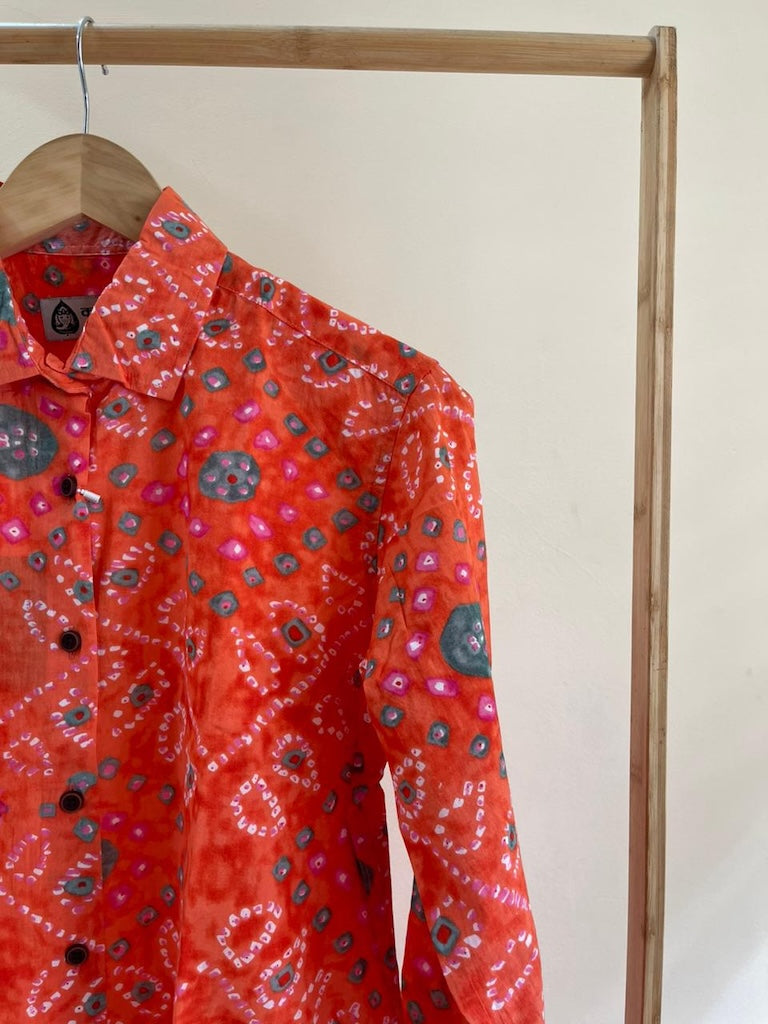 Women Traditional Bandhej Print Cotton Shirt - Orange