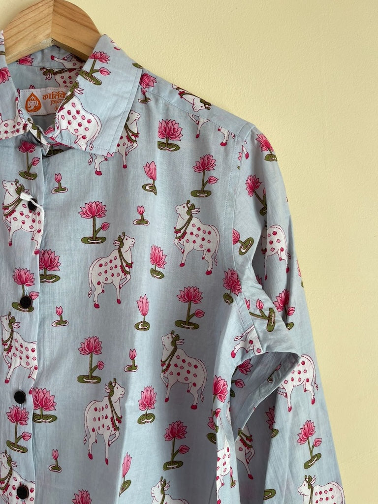 Womens Pichwai Cow Print Cotton Full Sleeves Shirt